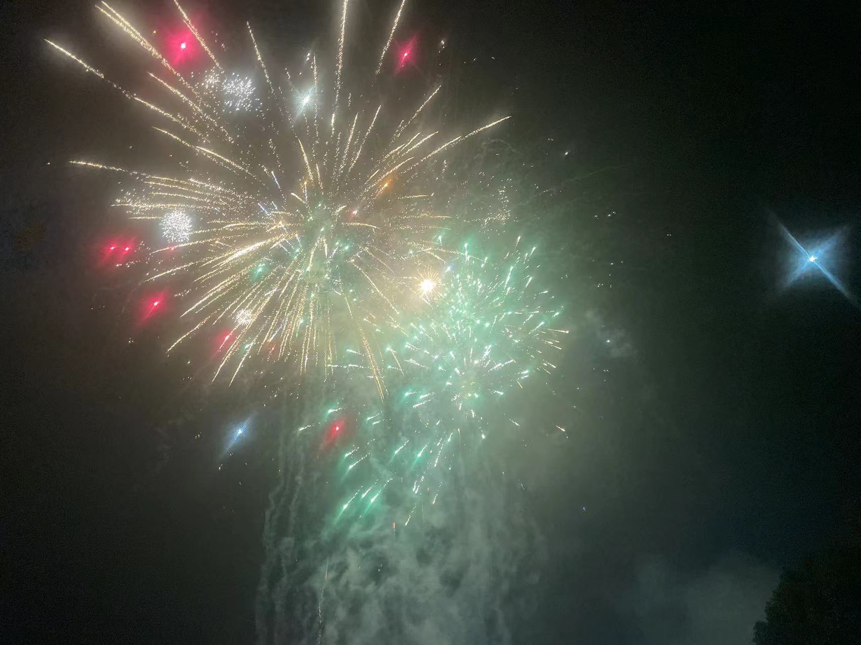 Det råder en festlig atmosfär i och utanför fabriken, och scenen av ljus och färger får alla att känna värmen från det nya året. De färgglada ljusen är som fyrverkerier som blommar på natthimlen, vilket ger en glad färg till hela fabriksområdet.