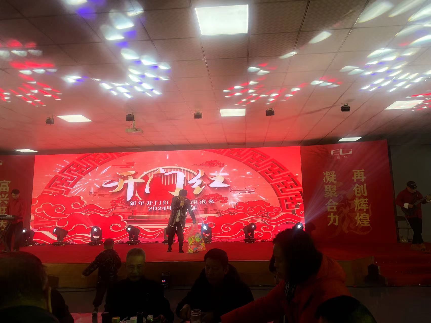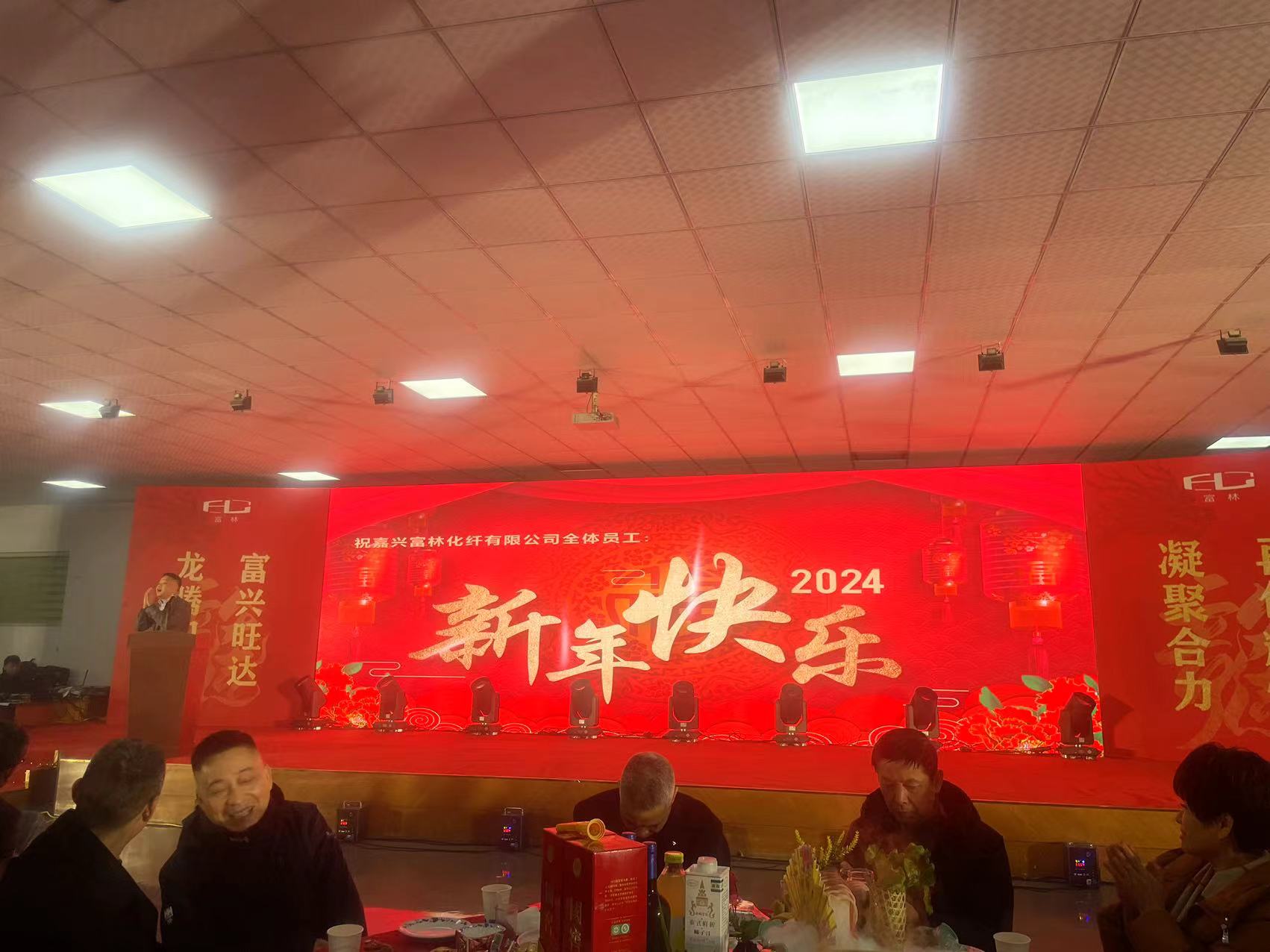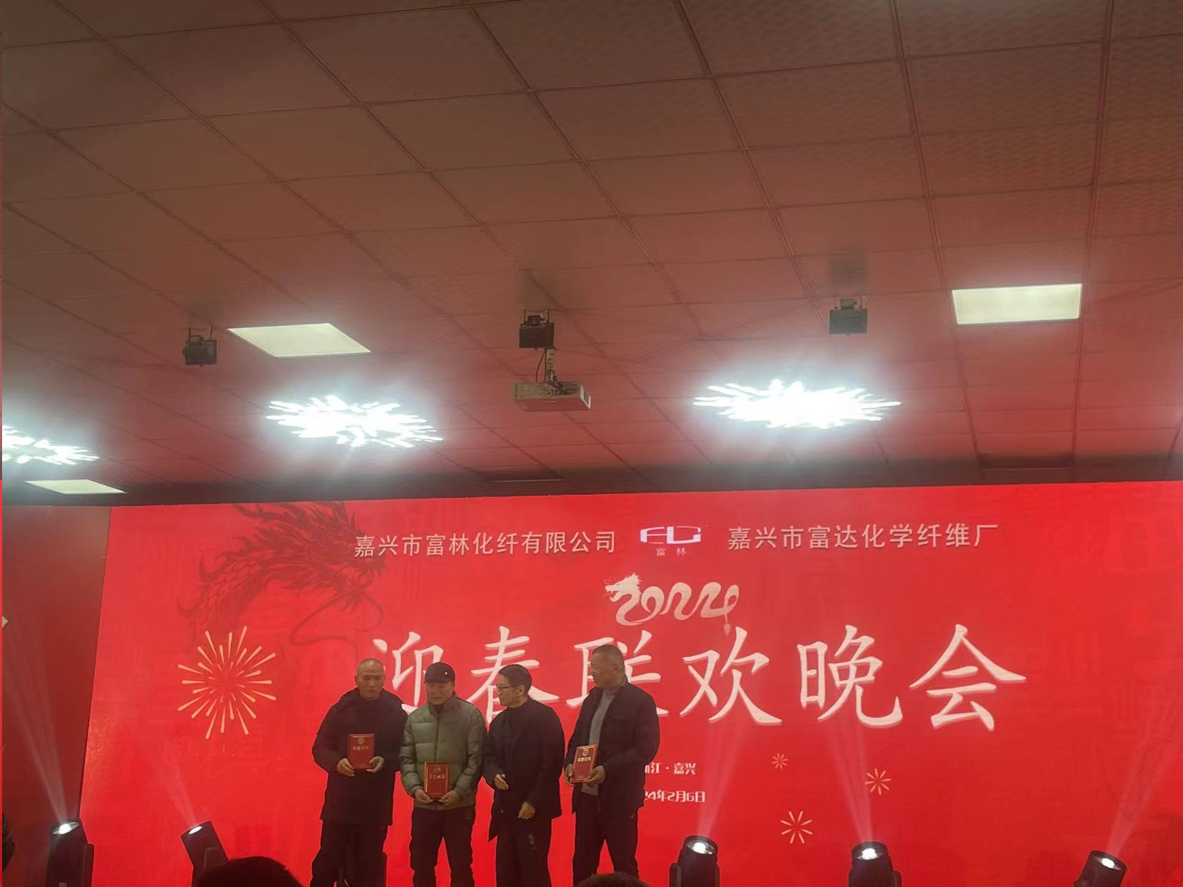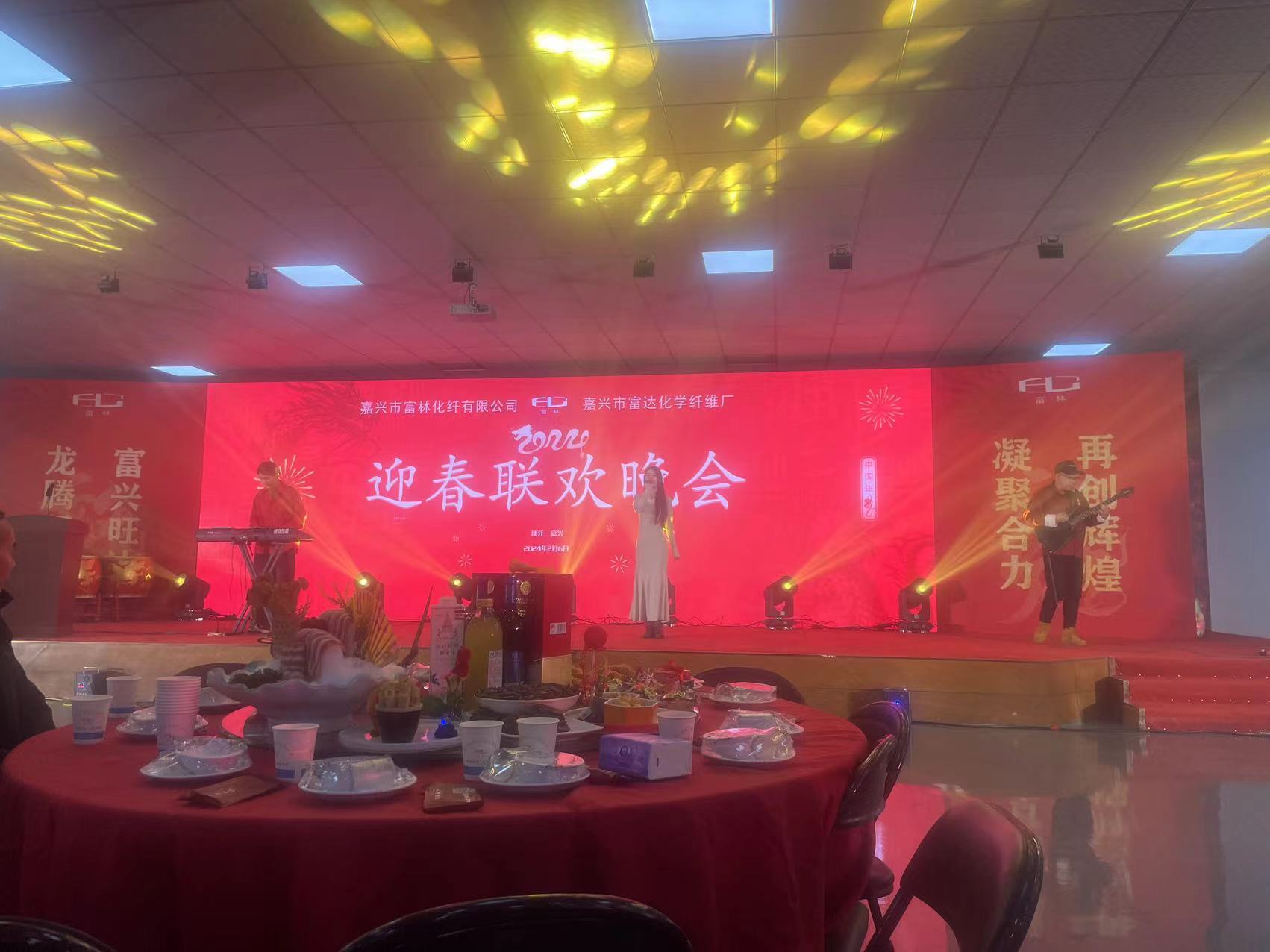 2024 År 2 måne 6 Samma dag försvann alla anställda på Jiaxing Fulin Chemical Fiber i den starka atmosfären på årsmötet.