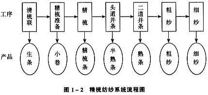 Kamningssystem används för att spinna högkvalitativt bomullsgarn, specialgarn eller blandningar av bomull och kemiska fibrer. Kamningssystemets process, namnen på halvprodukter och färdiga produkter visas i figuren nedan.