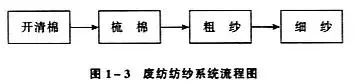 Avfallsspinningssystemet används för att bearbeta billigt grovt bomullsgarn, vars process visas i figuren nedan.