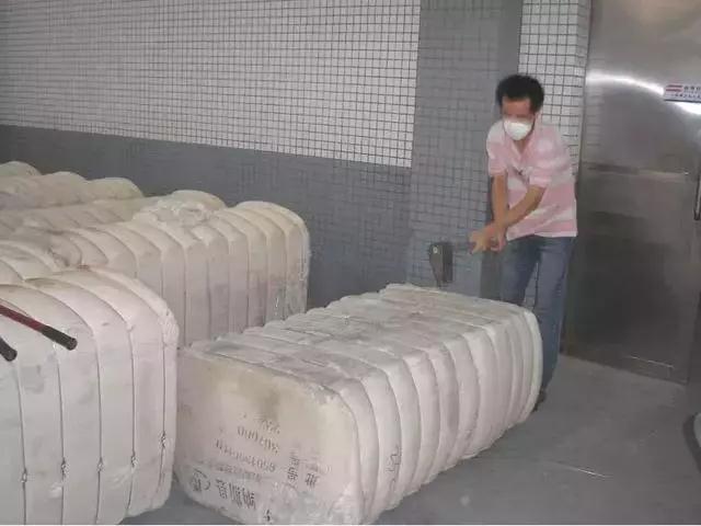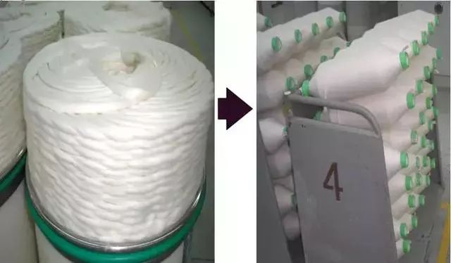 ▲Bomullsrullarna som genereras av rensningsprocessen matas till kardmaskinen