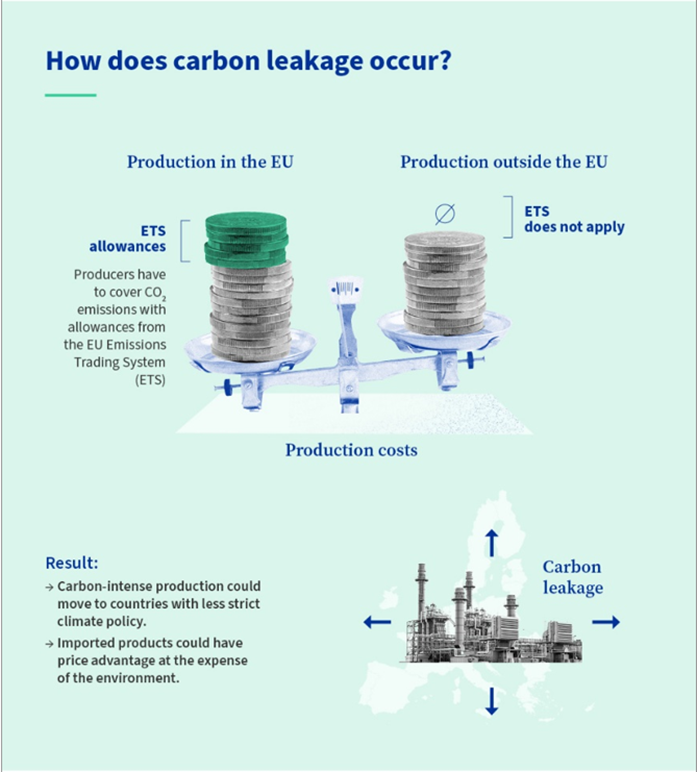 CBAM syftar till att förhindra "Carban Leakage", vilket hänvisar till det faktum att en strängare rutt med dubbla koldioxidutsläpp i en region kommer att leda till en ökning av koldioxidkostnaden i regionen, vilket tvingar företag som producerar produkter med hög koldioxid att gå över till låga koldioxidutsläpp. koldioxidkostnader, vilket resulterar i industriell överföring. Enligt EU:s färdplan för dubbla koldioxidutsläpp kommer koldioxidkvoterna gradvis att skärpas tills de elimineras, och företagens koldioxidkostnader kommer att stiga i enlighet med detta, och priset på koldioxidrika produkter kommer också att stiga, vilket resulterar i att marknaden importerar koldioxidrika produkter från utanför EU eller överföra produktionslinjer för produkter med hög koldioxidhalt till områden med låga koldioxidkostnader utanför EU, vilket kommer att skada EU:s ekonomi. Som en inhemsk och utländsk kolkostnadsbalansmekanism kommer CBAM att minska förekomsten av koldioxidläckage i viss utsträckning.